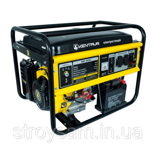 Генератор бензиновий Кентавр КБГ-505Е здатний забезпечити стабільним змінним електричним струмом напругою 220 В в тих місцях, де централізовану електричну мережу за різних обставин використовувати неможливо. Відмінною особливістю цієї моделі є електричний стартер, який забезпечує легкий запуск двигуна.
